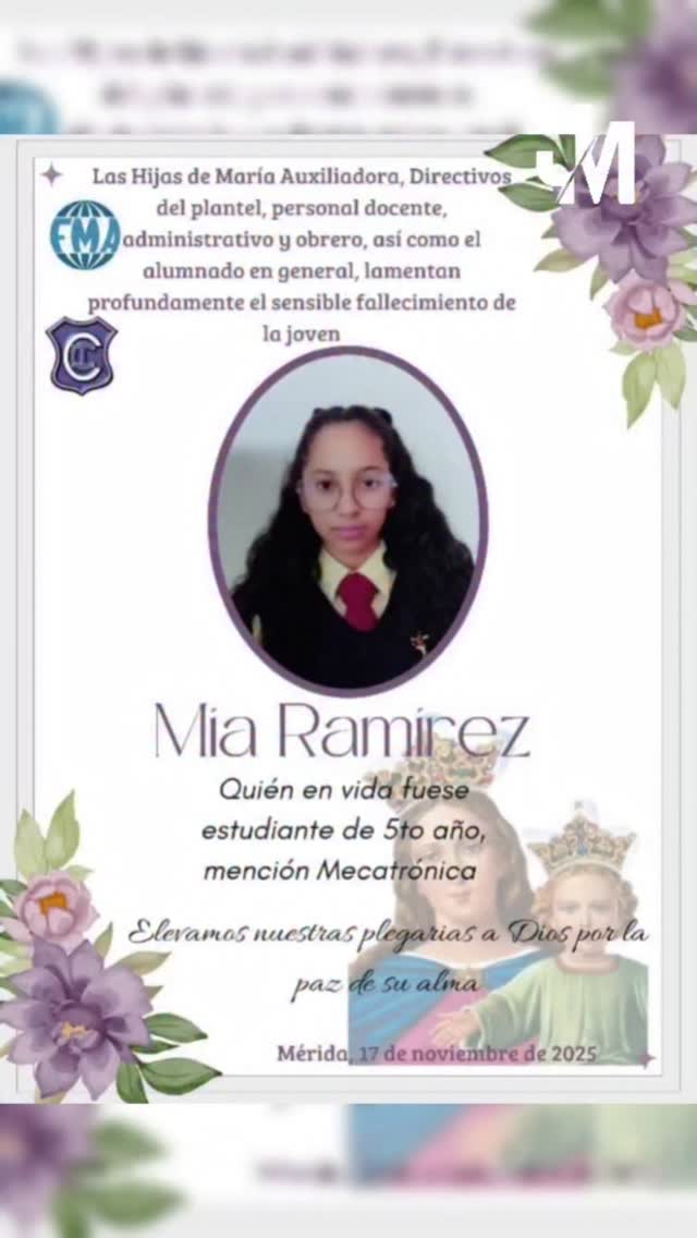 La fallecida fue identificada por las autoridades como: Mía Isabel Ramírez Reyes, quien estudiaba quinto año de bachillerato, mención mecatrónica, en la Unidad Educativa Colegio «Inmaculada Concepción» y vivía en las cercanías de la plaza Beethoven de la capital merideña.