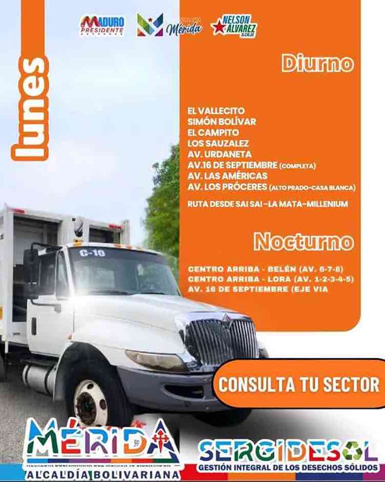 La Alcaldía del municipio Libertador liderado por el alcalde Nelson Álvarez junto a Sergidesol, articula nuevas estrategias para garantizar el cumplimiento de las rutas de recolección de desechos sólidos en la ciudad, el objetivo es mantener espacios limpios y ordenados, promoviendo la conciencia ciudadana en torno al manejo responsable de los residuos.