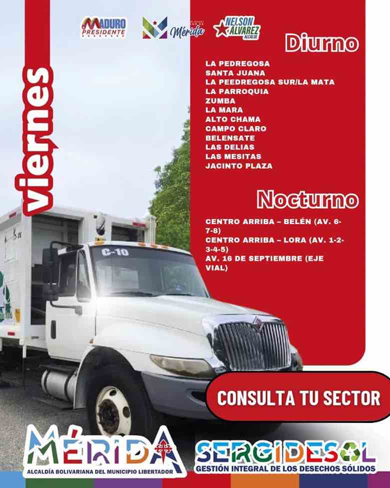 La Alcaldía del municipio Libertador liderado por el alcalde Nelson Álvarez junto a Sergidesol, articula nuevas estrategias para garantizar el cumplimiento de las rutas de recolección de desechos sólidos en la ciudad, el objetivo es mantener espacios limpios y ordenados, promoviendo la conciencia ciudadana en torno al manejo responsable de los residuos.