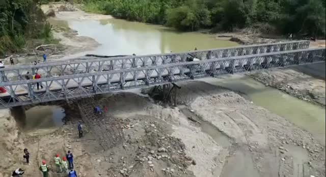 Destacaron las autoridades que el objetivo de los trabajos que se realizan, es consolidar el puente de hierro, soportándolo sobre las bases de concreto de alta resistencia, a fin de garantizar una solución definitiva y segura que permita dar la movilidad y seguridad en este tramo de la carretera Panamericana que conecta los estados Mérida con Táchira./Catarine Castro CNP. 8.962 @Notialgrano