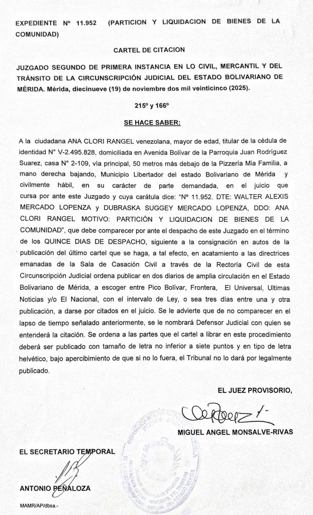 31 0 comentarios 0 FacebookTwitterPinterestEmail Redacción web publicación anterior EEUU se instalará en 2 aeropuertos de República Dominicana publicación siguiente Edicto mediante el cual se notifica a cuantas personas tengan interés directo y manifiesto sobre el procedimiento civil promovido por Karina del Valle Molina contra Ángel Antonio Molina Related Articles Cartel de notificación a todas las personas que pudieran resultar... 4 de diciembre de 2025 Convocatoria a la Asamblea Extraordinaria de Accionistas de... 4 de diciembre de 2025 CONVOCATORIA La Junta de Condominio del Edificio Las Terrazas... 3 de diciembre de 2025 EDICTO Se hace saber a los herederos desconocidos del... 1 de diciembre de 2025 SE HACE SABER: A la ciudadana PAOLA PATRICIA... 1 de diciembre de 2025 PRESCRIPCIÓN ADQUISITIVA – EDICTO Se hace saber que Dulce... 1 de diciembre de 2025 Cartel de Intimación se hace saber: al ciudadano... 30 de noviembre de 2025 📢 ¡¡¡Atención Señores Copropietarios!!! Convocatoria Oficial a la Asamblea... 29 de noviembre de 2025 CARTEL DE INTIMACIÓN al ciudadano PEDRO ANTONIO VELAZCO... 29 de noviembre de 2025 Convocatoria Oficial para la Celebración de la Asamblea... 28 de noviembre de 2025