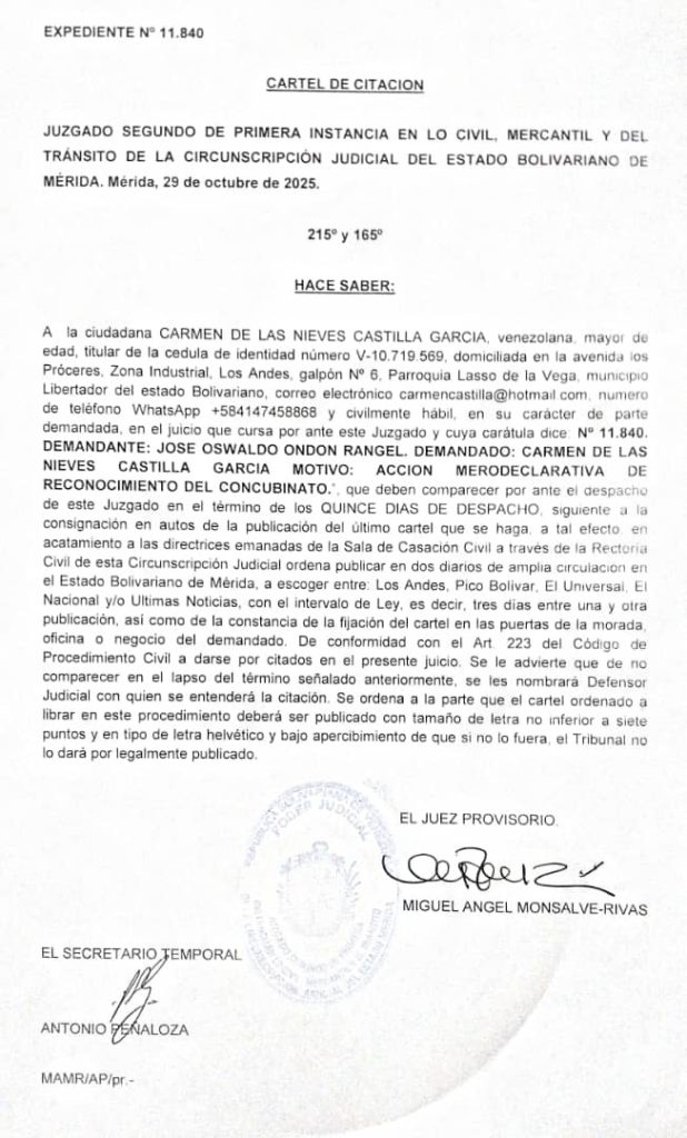 28 0 comentarios 0 FacebookTwitterPinterestEmail Redacción web publicación anterior Pensaban que acudían a una audiencia rutinaria de inmigración, pero entraron en una trampa de deportación , la mayoría de las personas detenidas en estas operaciones de ICE no tienen condenas penales publicación siguiente FANB y Gobernación garantizan cuarta Consulta Popular Nacional 2025 Related Articles Él Impreso Avisos Legales 25 de noviembre de 2025 PRESCRIPCIÓN ADQUISITIVA – EDICTO Se hace saber que... 24 de noviembre de 2025 SE HACE SABER: A la ciudadana PAOLA PATRICIA... 24 de noviembre de 2025 EDICTO Se hace saber a los herederos desconocidos del... 24 de noviembre de 2025 CARTEL DE NOTIFICACIÓN A la Ciudadana ANYOLINY DEL... 23 de noviembre de 2025 Tribunal Quinto de Municipio Ordinario y Ejecutor de... 23 de noviembre de 2025 CARTEL DE CITACIÓN Al ciudadano ADELXO ROJAS ROJAS,... 22 de noviembre de 2025 Cartel de Citación al ciudadano FREDY ROJAS DUGARTE,... 22 de noviembre de 2025 Cartel de Citación a la ciudadana CARMEN AURORA... 22 de noviembre de 2025 Cartel de citación a la ciudadana MARIA MATILDE... 22 de noviembre de 2025