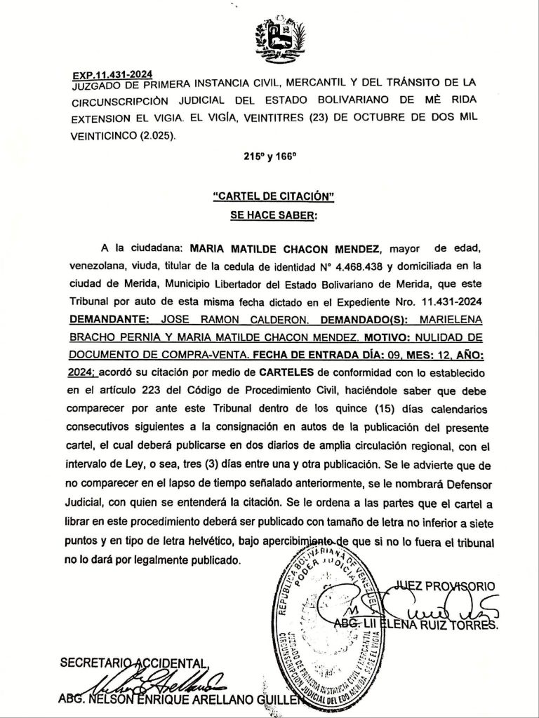 20 0 comentarios 0 FacebookTwitterPinterestEmail Redacción web publicación anterior SIN PASO EN LA CARRETERA PANAMERICANA SECTOR EL QUEBRADÓN POR COLAPSO DE ALCANTARILLA publicación siguiente Cartel de Citación a la ciudadana CARMEN AURORA ROJAS DE GONZALEZ, titular de la cédula de identidad N° V-10.714.126 Related Articles Convocatoria a Asamblea General de Propietarios Condominio “Residencias... 25 de noviembre de 2025 Él Impreso Avisos Legales 25 de noviembre de 2025 PRESCRIPCIÓN ADQUISITIVA – EDICTO Se hace saber que... 24 de noviembre de 2025 SE HACE SABER: A la ciudadana PAOLA PATRICIA... 24 de noviembre de 2025 EDICTO Se hace saber a los herederos desconocidos del... 24 de noviembre de 2025 CARTEL DE NOTIFICACIÓN A la Ciudadana ANYOLINY DEL... 23 de noviembre de 2025 Tribunal Quinto de Municipio Ordinario y Ejecutor de... 23 de noviembre de 2025 CARTEL DE CITACIÓN Al ciudadano ADELXO ROJAS ROJAS,... 22 de noviembre de 2025 Cartel de Citación al ciudadano FREDY ROJAS DUGARTE,... 22 de noviembre de 2025 Cartel de Citación a la ciudadana CARMEN AURORA... 22 de noviembre de 2025