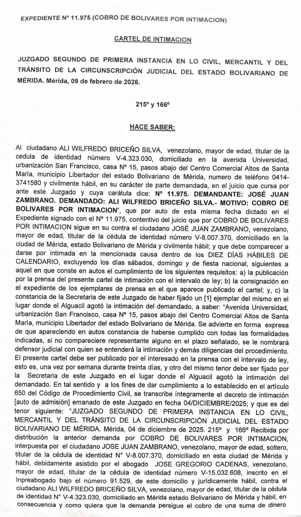 4 0 comentarios 0 FacebookTwitterPinterestEmail Redacción web publicación anterior Detenidos dos hombres que contäminaron Los Juanes con espumas y aerosoles prohibidos publicación siguiente NO HAY PASO HACIA LA PALMITA POR TRABAJOS DE LA GOBERNACIÓN DEL ESTADO EN EL PUENTE Related Articles CARTEL DE CITACIÓN HACE SABER: A la ciudadana... 19 de febrero de 2026 CARTEL. SE HACE SABERAl ciudadano ABEL ZERPA PUENTES,... 19 de febrero de 2026 EDICTO HACE SABER A los HEREDEROS DESCONOCIDOS de... 17 de febrero de 2026 CARTEL DE CITACION: SE HACE SABER Al ciudadano... 17 de febrero de 2026 CONVOCATORIA A ASAMBLEA DE COPROPIETARIOS Conjunto Residencial Tinajeros... 17 de febrero de 2026 Edicto. Se hace saber a los HEREDEROS DESCONOCIDOS... 16 de febrero de 2026 EDICTO. Se hace saber a todas aquellas personas... 16 de febrero de 2026 CARTEL DE CITACIÓN SE HACE SABER: Al ciudadano:... 16 de febrero de 2026 EDICTO. Se hace saber a los HEREDEROS DESCONOCIDOS... 14 de febrero de 2026 Convocatoria a Asamblea General de Propietarios Condominio “Residencias... 12 de febrero de 2026