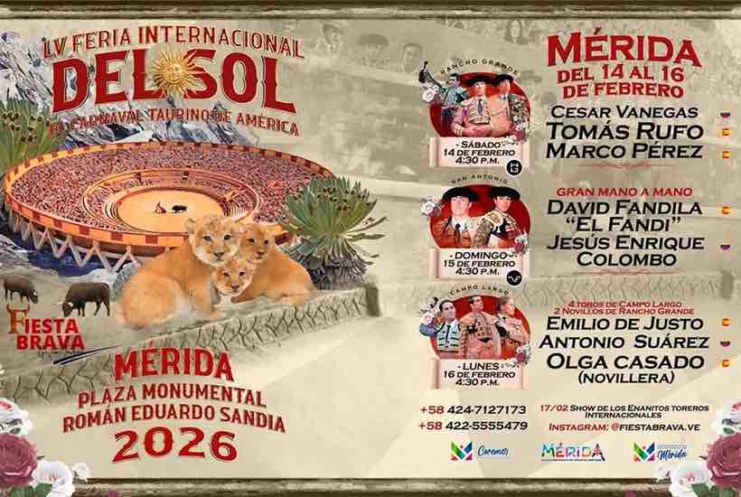 Del 14 al 16 de febrero, la plaza de toros Roman Eduardo Sandía vuelve a latir con fuerza en la Feria Internacional del Sol 2026, donde la tradición, el valor y la emoción se dan cita de la mano de Fiesta Brava, en tres tardes que prometen quedar grabadas en la historia del Carnaval Taurino de América.