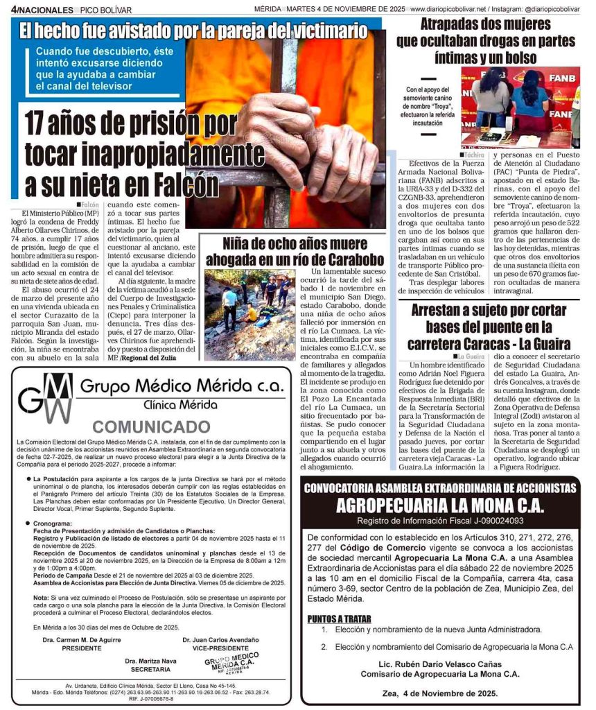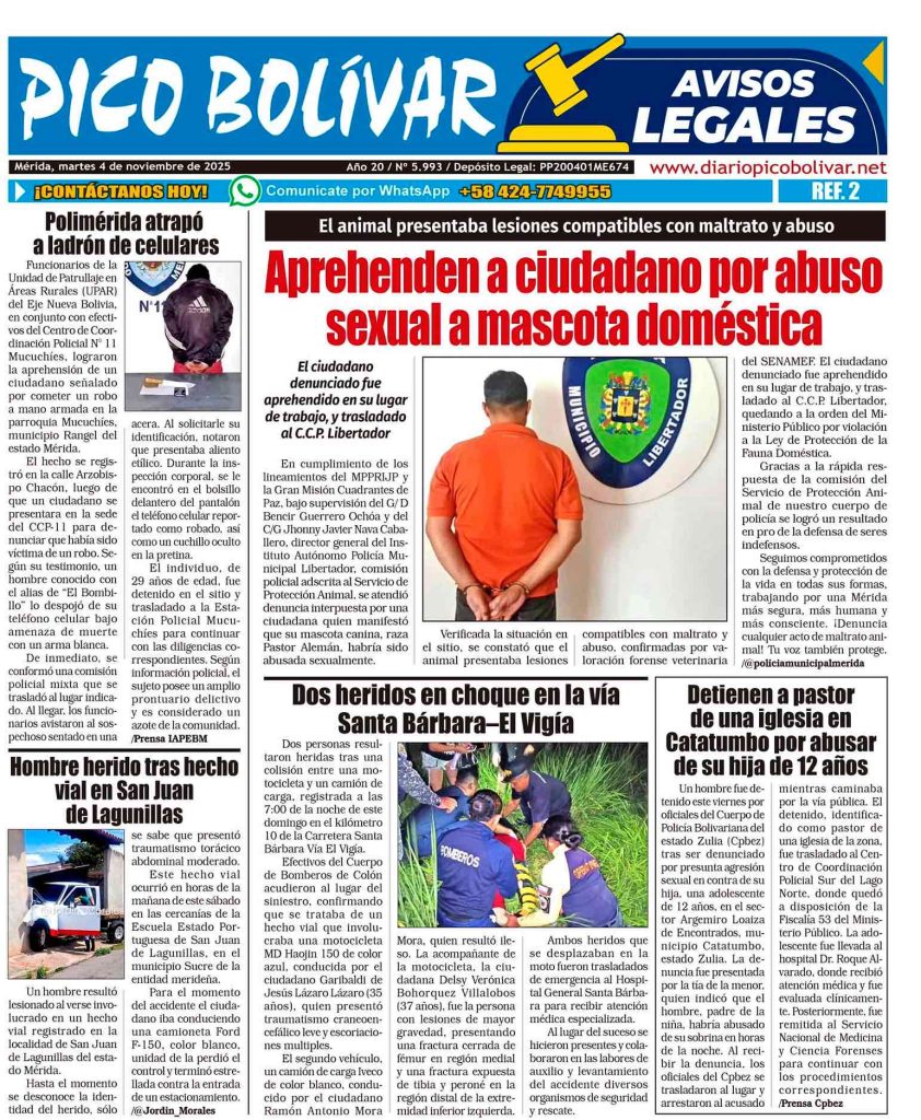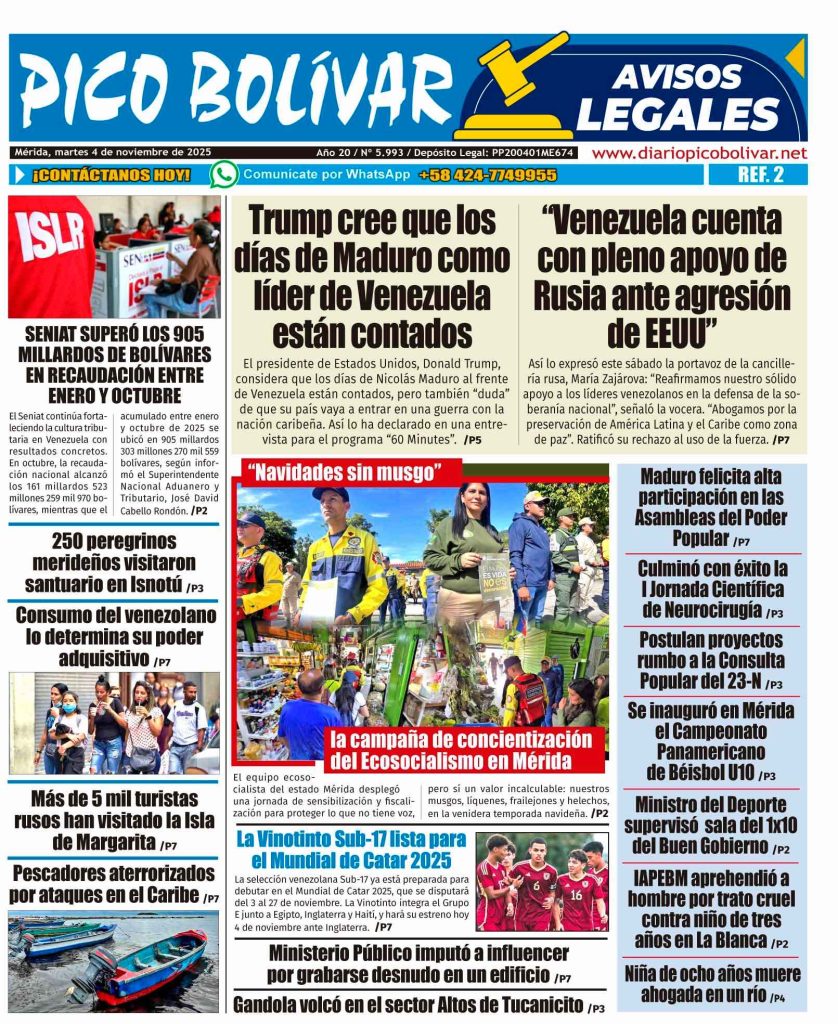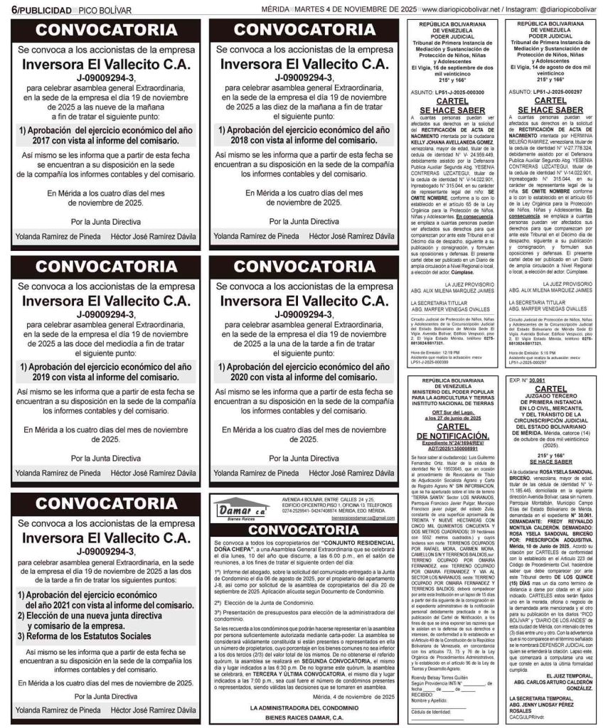 Edición impresa Él Impreso por Redacción web 3 de noviembre de 2025 escrito por Redacción web 3 de noviembre de 2025 Bookmark 30 0 comentario 0 FacebookTwitterPinterestEmail Redacción web Seguir publicación anterior CARTEL DE INTIMACIÓN al ciudadano: JOSÉ GIOVANNI ROJAS CARRERO, titular la cédula de identidad N° V-13.525.188 publicación siguiente Él Impreso Related Articles Bookmark Colegio de Contadores Públicos de Mérida atendió a más... 5 de noviembre de 2025 Bookmark Buscan a hombre desaparecido en Ejido 29 de octubre de 2025 Bookmark El Impreso 27 de octubre de 2025 Bookmark Este viernes será la juramentación de nuevos agremiados 23 de octubre de 2025 Bookmark Cicpc investiga la muerte de una niña en... 21 de octubre de 2025 Bookmark Agricultor murió al caer por un barranco en... 21 de octubre de 2025