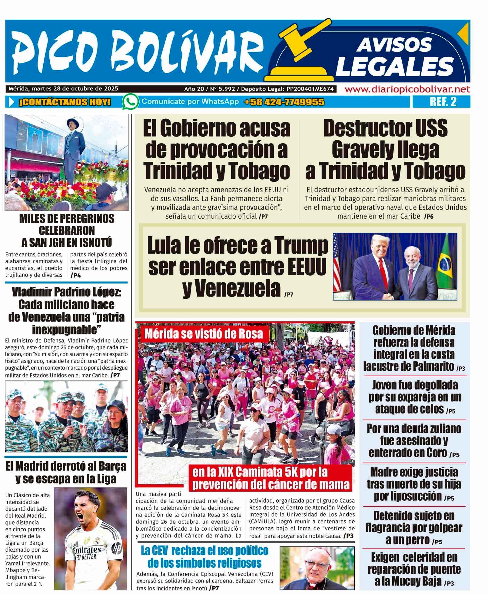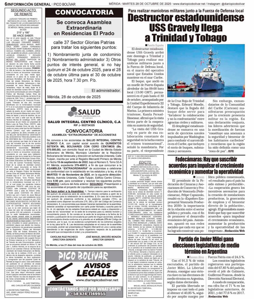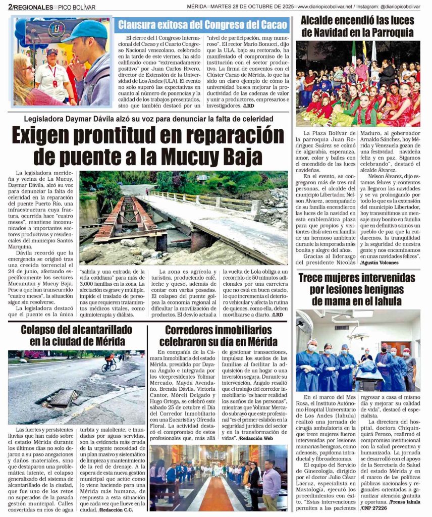 Edición impresa El Impreso por Redacción web 27 de octubre de 2025 escrito por Redacción web 27 de octubre de 2025 Bookmark 36 0 comentario 0 FacebookTwitterPinterestEmail Redacción web Seguir publicación anterior Diputado Lobo: «La economía venezolana mantiene un crecimiento sostenido pese a las amenazas externas» publicación siguiente Hallaron ahorcado a un joven en el INAM de Merida Related Articles Bookmark Él Impreso 3 de noviembre de 2025 Bookmark Buscan a hombre desaparecido en Ejido 29 de octubre de 2025 Bookmark Este viernes será la juramentación de nuevos agremiados 23 de octubre de 2025 Bookmark Cicpc investiga la muerte de una niña en... 21 de octubre de 2025 Bookmark Agricultor murió al caer por un barranco en... 21 de octubre de 2025