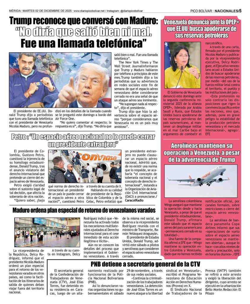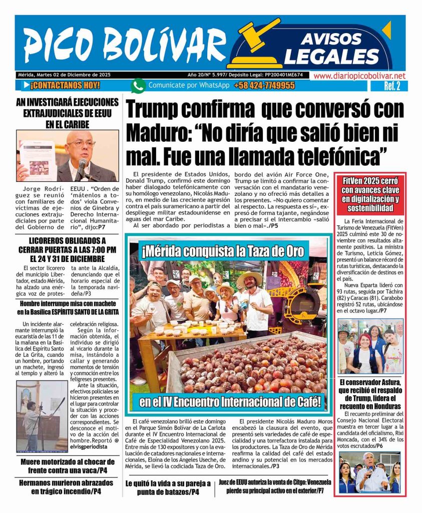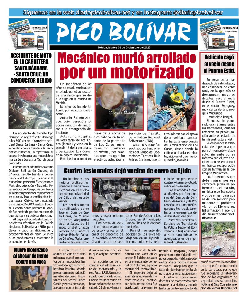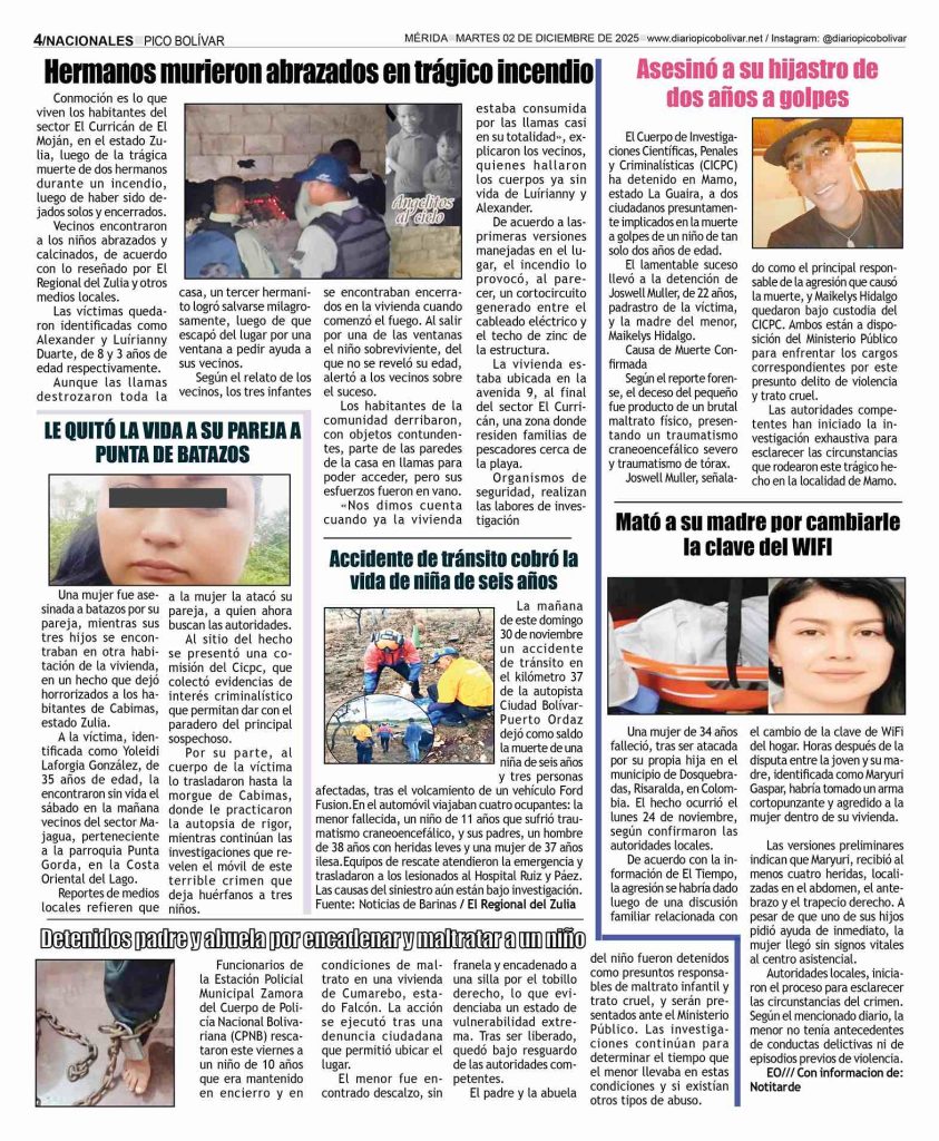 Edición impresa El Impreso por Redacción web 1 de diciembre de 2025 escrito por Redacción web 1 de diciembre de 2025 19 0 comentarios 0 FacebookTwitterPinterestEmail Redacción web publicación anterior El «Santa» de la Cota Mil dio la bienvenida a la Navidad en Caracas publicación siguiente Hermanitos murieron abrazados en trágico incendio, su madre los había dejado solos y encerrados. Related Articles Él Impreso 24 de noviembre de 2025 Él Impreso 17 de noviembre de 2025 Él Impreso 3 de noviembre de 2025