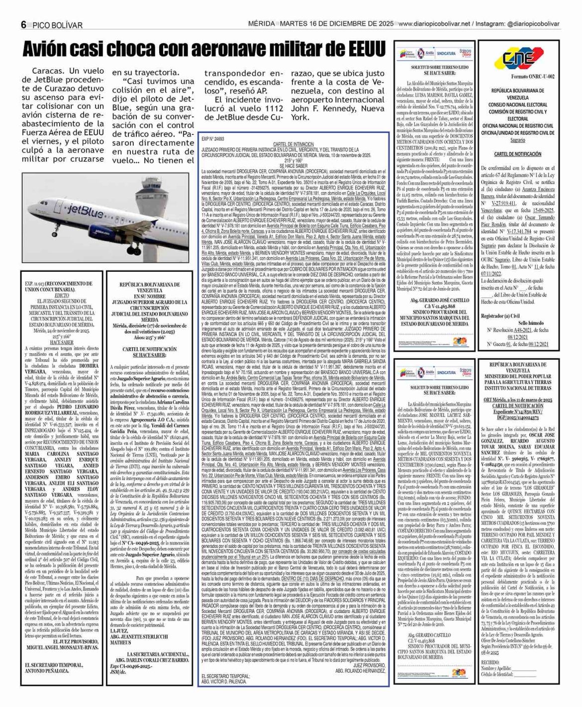 8 0 comentarios 0 FacebookTwitterPinterestEmail Redacción web publicación anterior Él Impreso publicación siguiente Tres lesionados tras colisión entre motocicletas en Cardenal Quintero Related Articles CARTEL DE CITACIÓN A la Sociedad Mercantil «PROYECTOS... 16 de diciembre de 2025 EDICTO Se hace saber a los herederos desconocidos... 15 de diciembre de 2025 Edicto judicial convoca a herederos de Lucía María... 15 de diciembre de 2025 PRESCRIPCIÓN ADQUISITIVA – EDICTO Se hace saber que... 15 de diciembre de 2025 Convocatoria a Asamblea General Extraordinaria de Copropietarios de... 11 de diciembre de 2025 Convocatoria Oficial para la Asamblea General de Propietarios... 11 de diciembre de 2025 Conjunto Residencial Las Calas Torres 1 y 2... 10 de diciembre de 2025 Propietarios del Conjunto Residencial Villas El Bosque convocan... 10 de diciembre de 2025 CARTEL DE EMPLAZAMIENTO RECTIFICACIÓN DE ACTA DE NACIMIENTO 9 de diciembre de 2025 EDICTO Se hace saber a los herederos desconocidos... 8 de diciembre de 2025