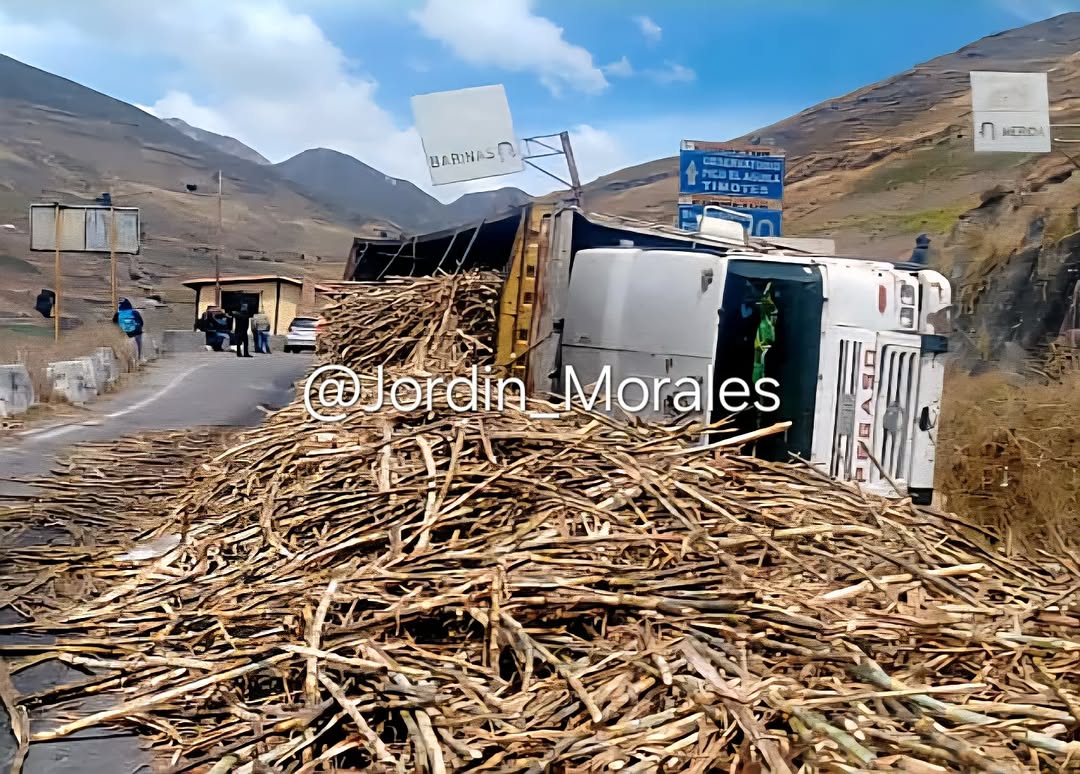 Una gandola cargada con caña de azúcar, por razones que indagan los organismos de seguridad, se volcó sobre la vía a la altura del sector La Curva de la carretera Trasandina, en Apartaderos, municipio Rangel del estado Mérida. El conductor de la unidad de carga pesada, que tenía como destino la localidad de Lagunillas en la entidad merideña, sufrió lesiones leves por lo que no fue trasladado a un centro asistencial.