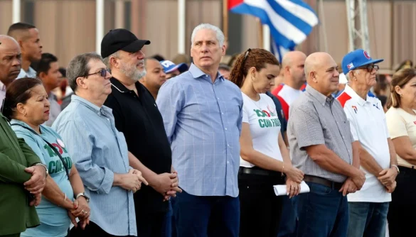El presidente de Cuba, Miguel Díaz-Canel participó en la caravana llamada Parada Juvenil Antiimperialista sobre Ruedas este jueves 2 de abril en La Habana, Cuba | Foto: EFE