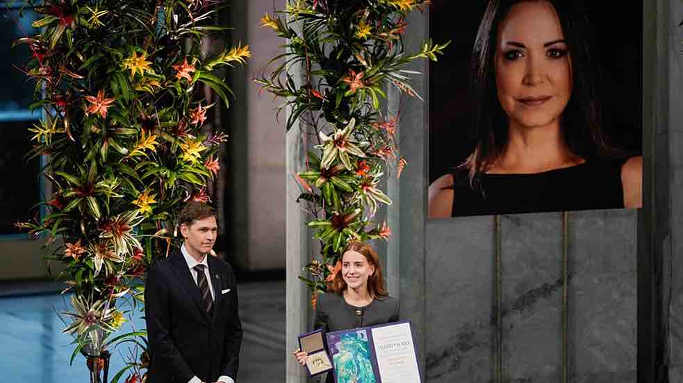 Hija de María Corina Machado recibe el Premio Nobel en su representación