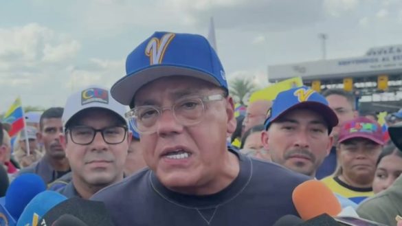 El presidente de la Asamblea Nacional, Jorge Rodríguez, durante su participación en la denominada «Gran Peregrinación por una Venezuela Libre de Sanciones», en el estado Bolívar, rechazó los insultos y expresiones que, según denunció, han sido promovidos por sectores de la extrema derecha venezolana en el exterior.