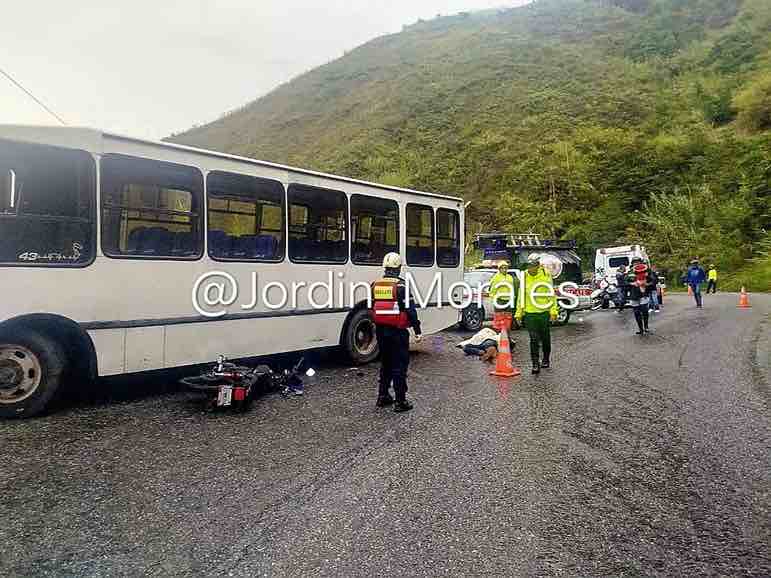 Un joven de 20 años de edad, perdió la vida al verse involucrado en la colisión entre una moto y una unidad de transporte público en el estado Mérida.