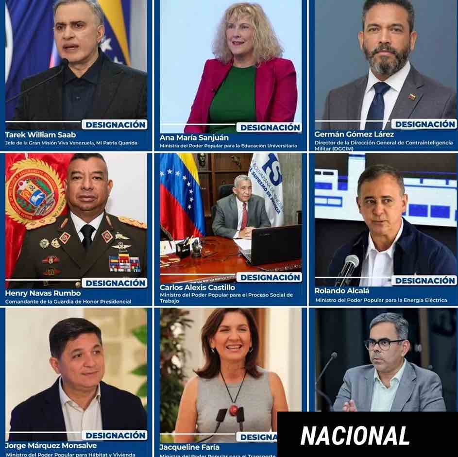 Asimismo, nombró como nueva ministra para el Transporte a la hasta ahora diputada Jacqueline Faría, también exministra de Ambiente, quien sustituye al vicealmirante Aníbal Coronado en esa cartera.