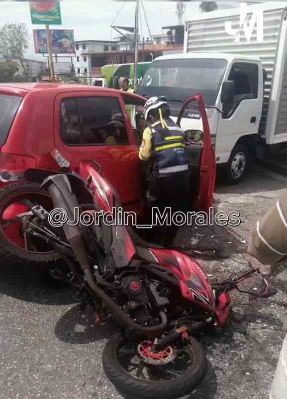 Chevrolet NPR, color blanco, manejado por José Oviedo, de 47 años, quien resultó ileso; un Volkswagen Fox, color rojo, conducido por Ana Durán, quien también resultó ilesa; y la moto Escuda 150, color rojo, que iba manejando Araque.
