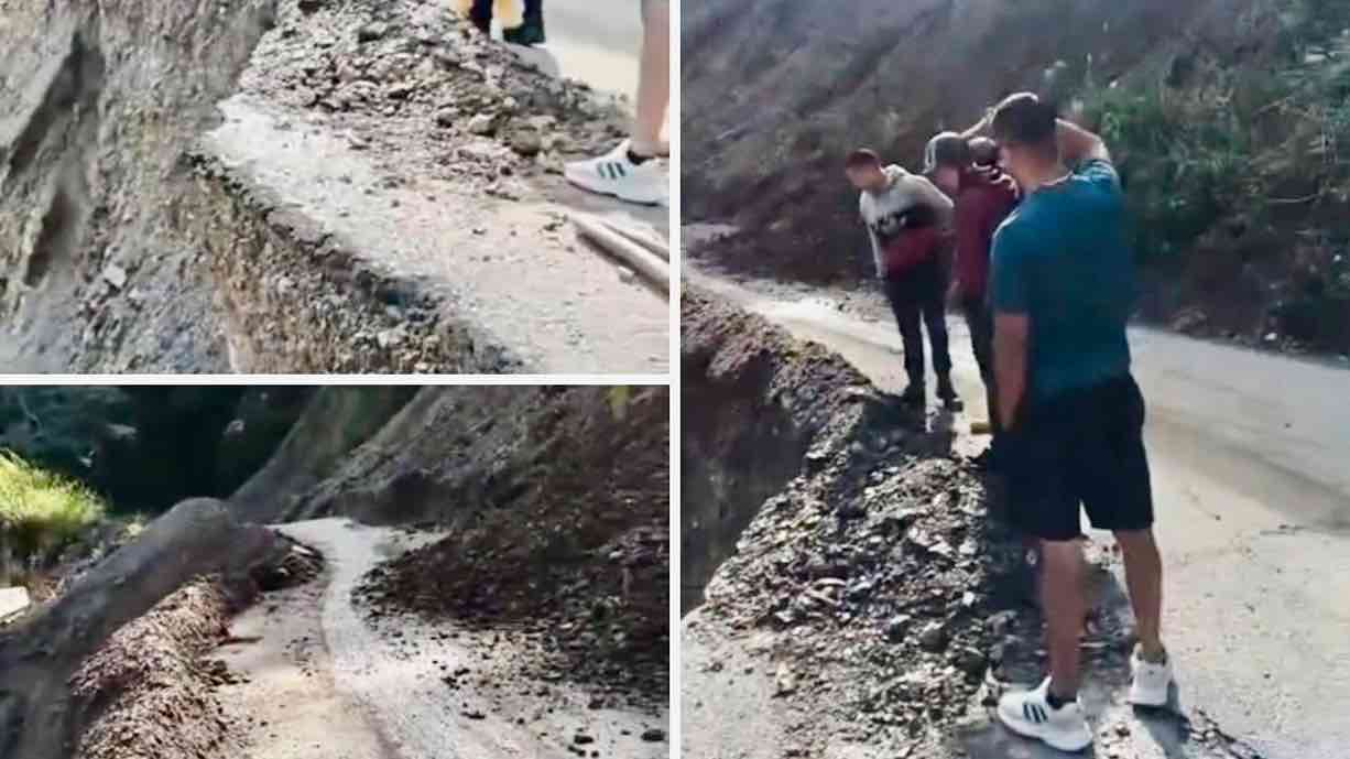 MÉRIDA.- Funcionario de Protección Civil en Mérida recomiendan a los conductores evitar el tránsito por un tramo del sector El Cafetal, lugar afectado por lluvias.