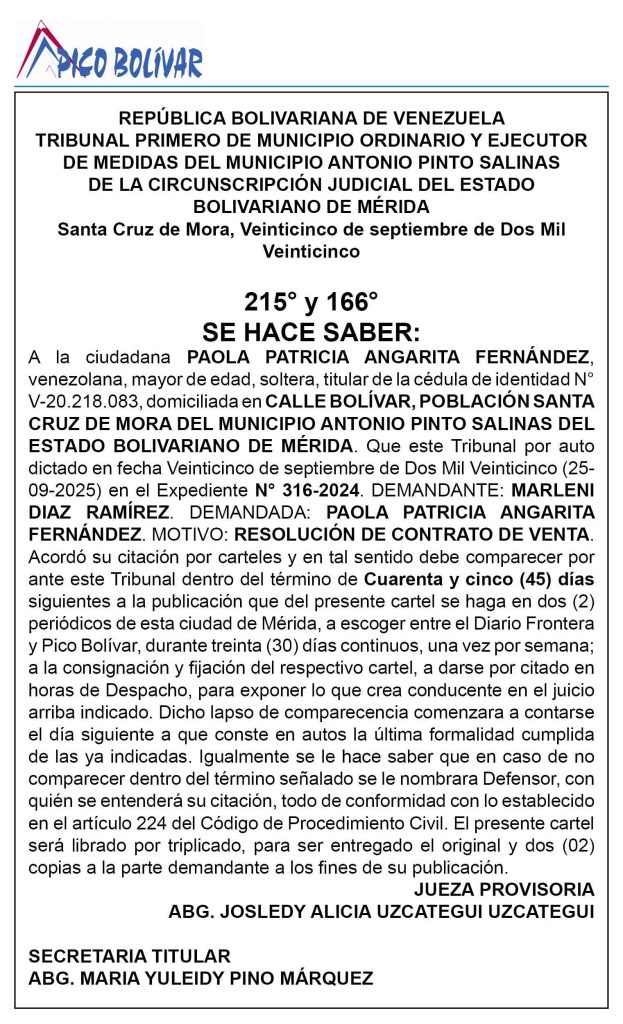 5 0 comentario 0 FacebookTwitterPinterestEmail Redacción web Seguir publicación anterior CARTEL DE NOTIFICACIÓN al: S2. JESUS ADRIAN ROJO ALVARADO, C.I.V N° 27.358.916, Related Articles CARTEL DE NOTIFICACIÓN al: S2. JESUS ADRIAN ROJO... 7 de noviembre de 2025 Convocatoria a Asamblea General Ordinaria de Copropietarios –... 7 de noviembre de 2025 CARTEL DE CITACION al ciudadano: EDGAR ALEXANDER SOTO... 6 de noviembre de 2025 La Junta de Condominio del Edificio “P” del Conjunto Residencial “Monseñor... 5 de noviembre de 2025 Convocatoria a Asamblea Extraordinaria de Copropietarios del Condominio... 5 de noviembre de 2025 Bookmark Él Impreso 3 de noviembre de 2025 CARTEL DE INTIMACIÓN al ciudadano: JOSÉ GIOVANNI ROJAS... 3 de noviembre de 2025 CARTEL DE CITACIÓN al ciudadano, FRANCISCO SOUTO PRINA,... 31 de octubre de 2025 CARTEL DE CITACION a la ciudadana: OSMARY BRIGITTE... 30 de octubre de 2025 CARTEL DE CITACION al ciudadano: EDGAR ALEXANDER SOTO... 30 de octubre de 2025