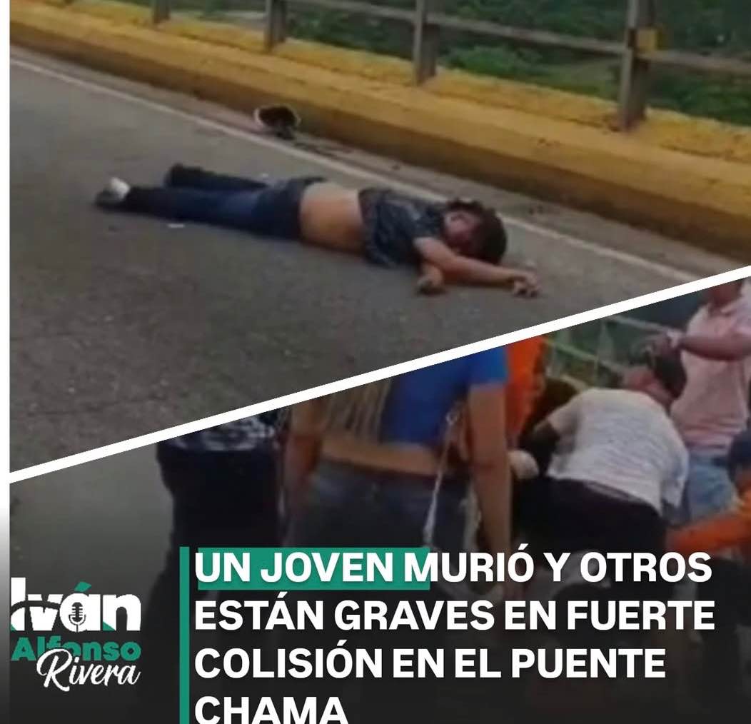 Un joven falleció de manera instantánea y otras personas, entre ellas mujeres, se encuentran gravemente lesionadas, tras ocurrir un fuerte accidente de tránsito en moto, en pleno puente Chama, en El Vigía, capital del municipio Alberto Adriani del estado